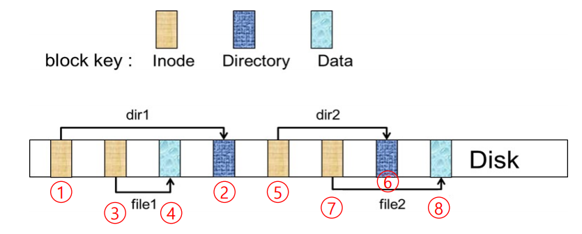 Linked List Allocation -> 링크 리스트로 파일 데이터 저장 -> ex) MS_DOS의 FAT 파일 시스템